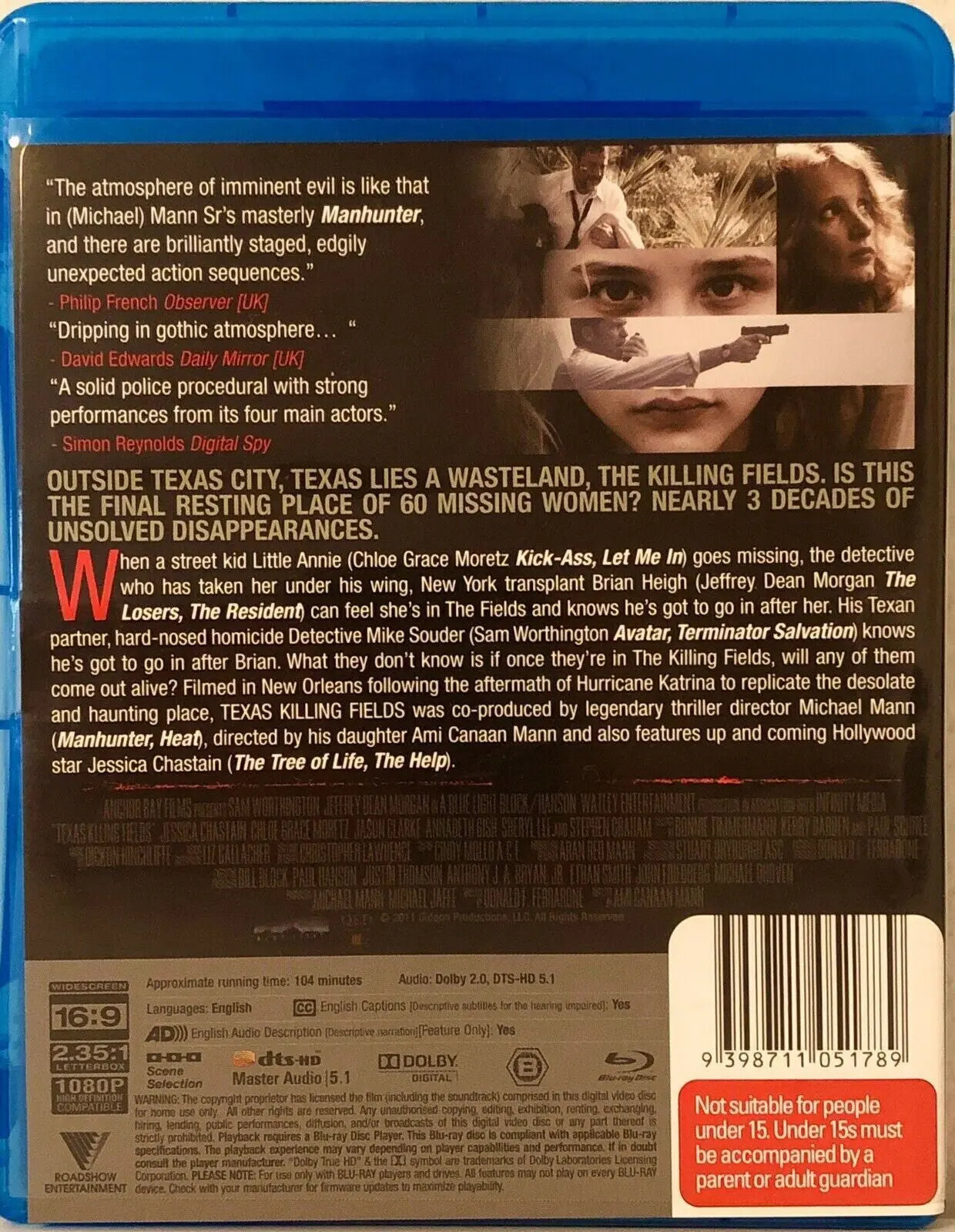 Brand new Texas Killing Fields movie on Blu-ray. This thrilling mystery stars Jessica Chastain, Jeffrey Dean Morgan and Sam Worthington. Region B encoding makes it suitable for use in Europe, Australia, New Zealand, Africa and other regions.