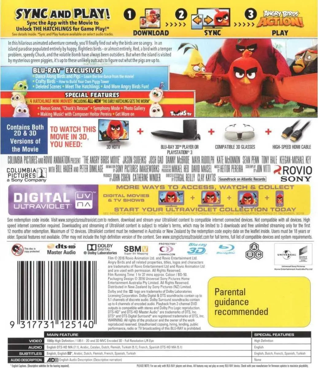 Movie/TV Title: The Angry Birds Movie | 3d + 2D Blu-ray Disc